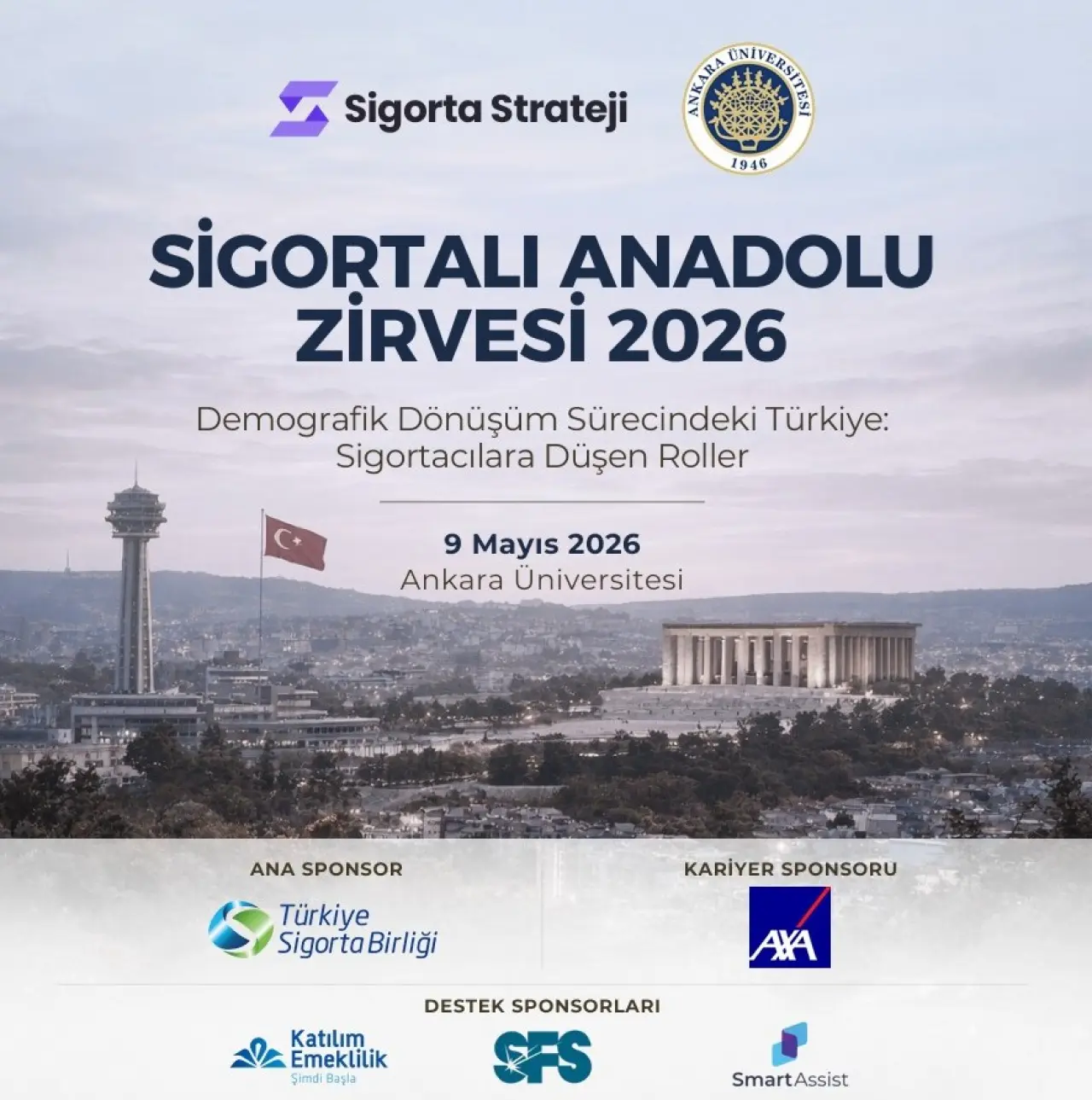 Sigortalı Anadolu Zirvesi 2026, 9 Mayıs’ta Ankara Üniversitesi ev sahipliğinde düzenlenecek. Zirvede demografik dönüşüm ve sigortacılığın rolü ele alınacak.